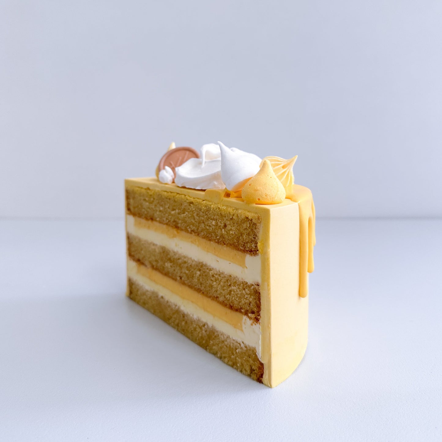 Cakes should be stored in the refrigerator and taken out to be brought to room temperature half to one hour prior to serving.