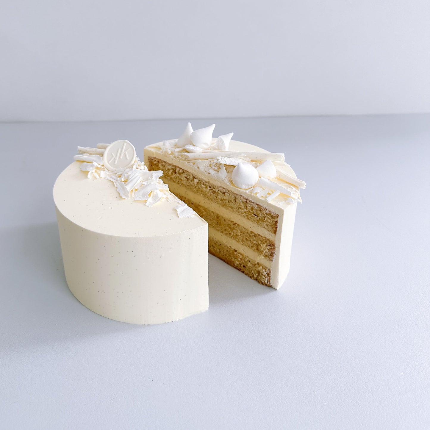 tahitian vanilla sponge. vanilla whipping ganache - we use real seeds, not essence.